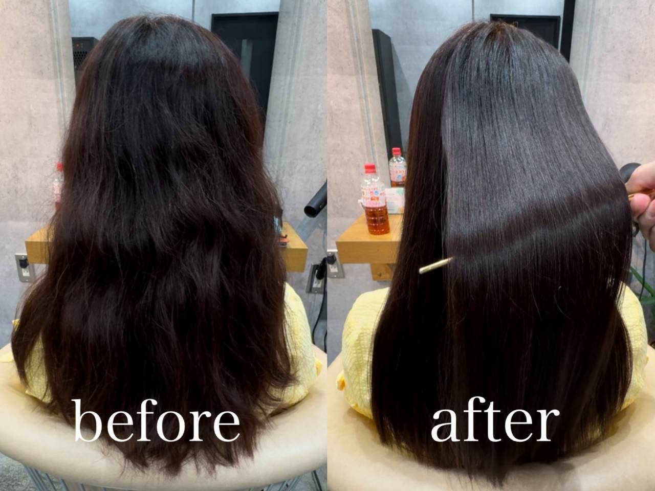 一回目の施術でここまでキレイになりましたが、定期的に髪質改善エステを繰り返すことにより光り輝く艶髪をキープすることができます。