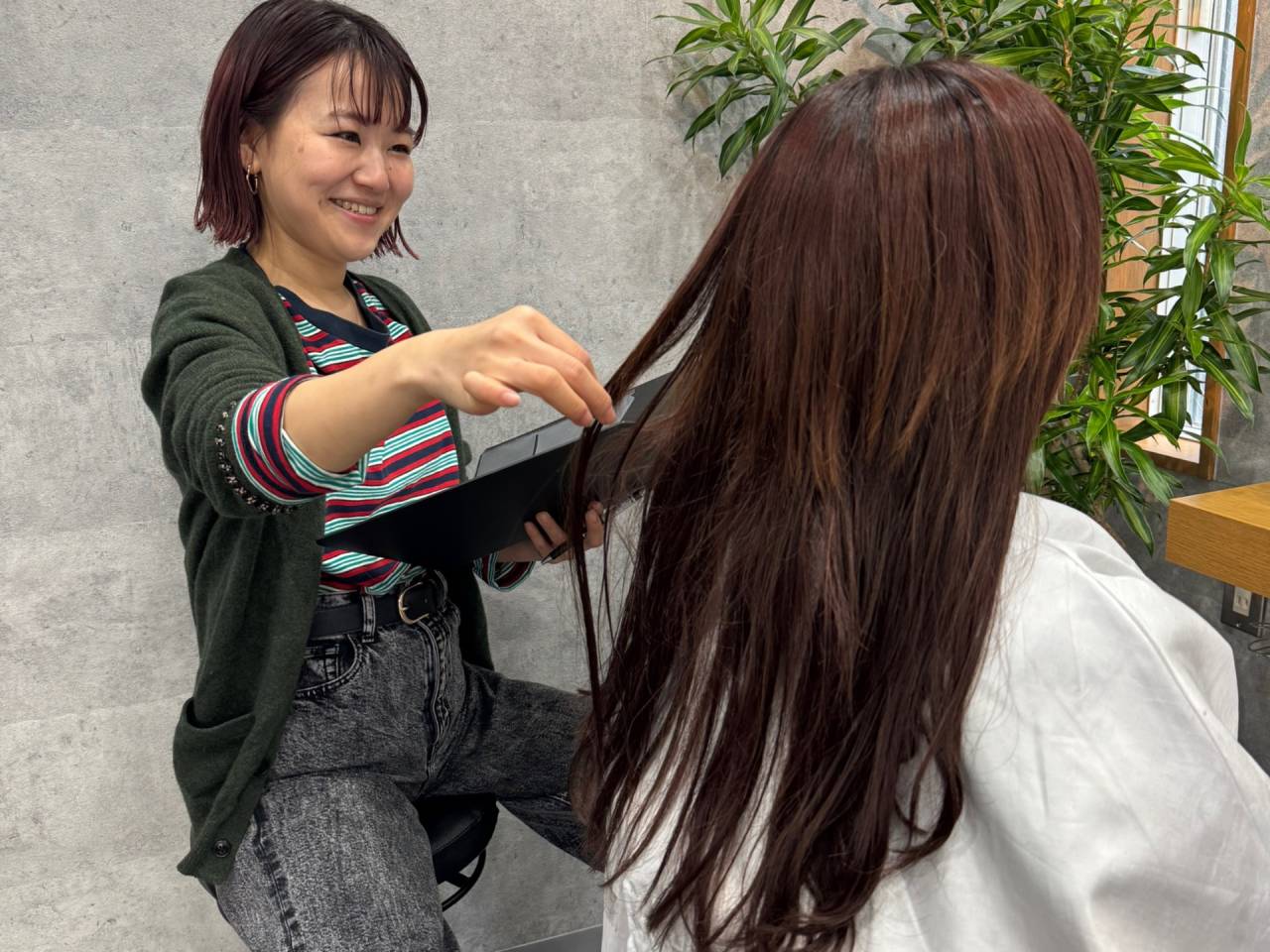 ご自宅での髪のお手入れ方法はもちろん、髪を傷ませない為の美容室での施術オーダーの仕方や、ご自宅でのシャンプー、トリートメント、ドライヤーの仕方など髪質を改善する為に必要なお手入れポイントを丁寧に伝えさせていただきます。