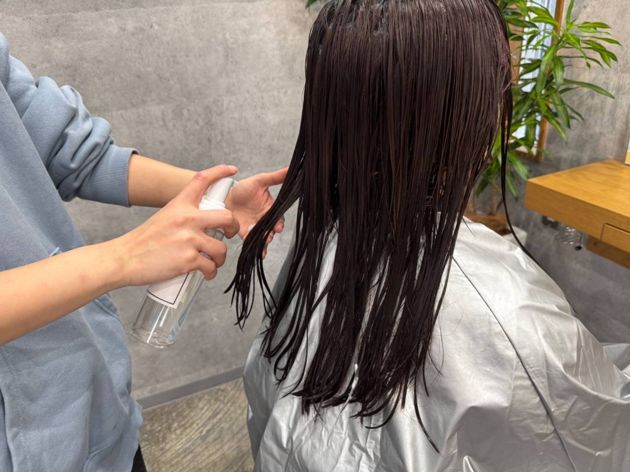 アルカリに傾いた髪のpHバランスを弱酸性に戻しつつ、水分補給と油分コーティングを行い、髪表面の質感を改善します。施術後の髪のコンディションを長期にわたって維持するために必要不可欠な工程です。
